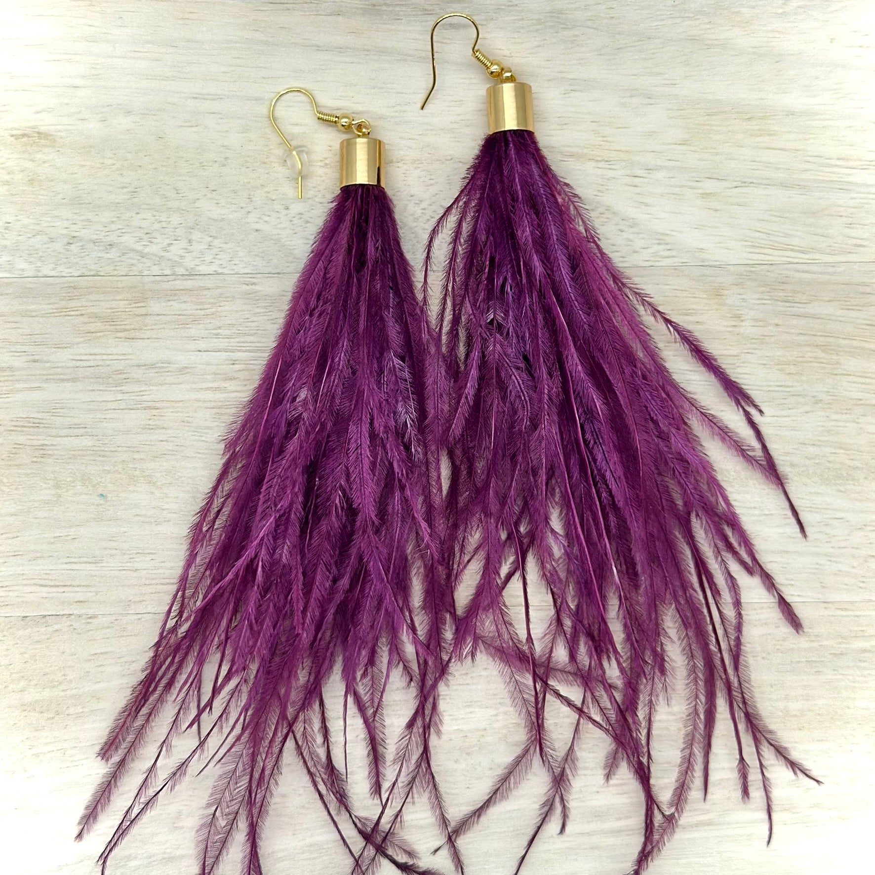 Experience a transformation when you adorn yourself with our Feather Earrings. The long statement design showcases delicate feathers, perfect for adding movement and texture to any outfit.